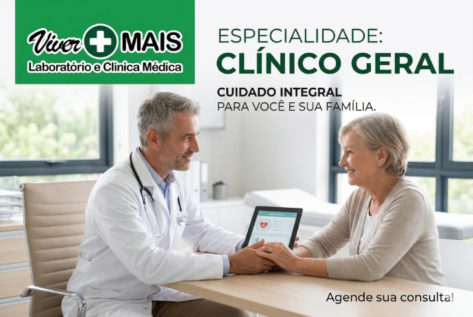 Na Clínica Viver Mais, acreditamos que a verdadeira saúde começa com a prevenção e com um acompanhamento médico contínuo. Nosso atendimento em Clínica Médica é focado em resolver a maioria das suas necessidades de saúde de forma ágil, humana e resolutiva, garantindo que você tenha a melhor qualidade de vida em todas as idades.