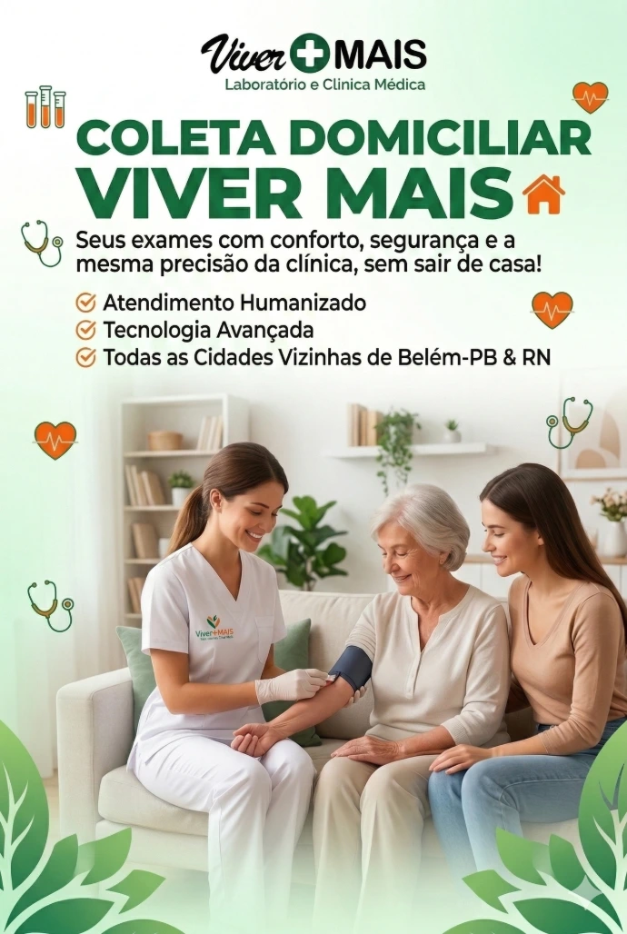 "A qualidade do Viver Mais vai até você na Paraíba! Oferecemos coleta domiciliar com a mesma precisão das nossas clínicas.